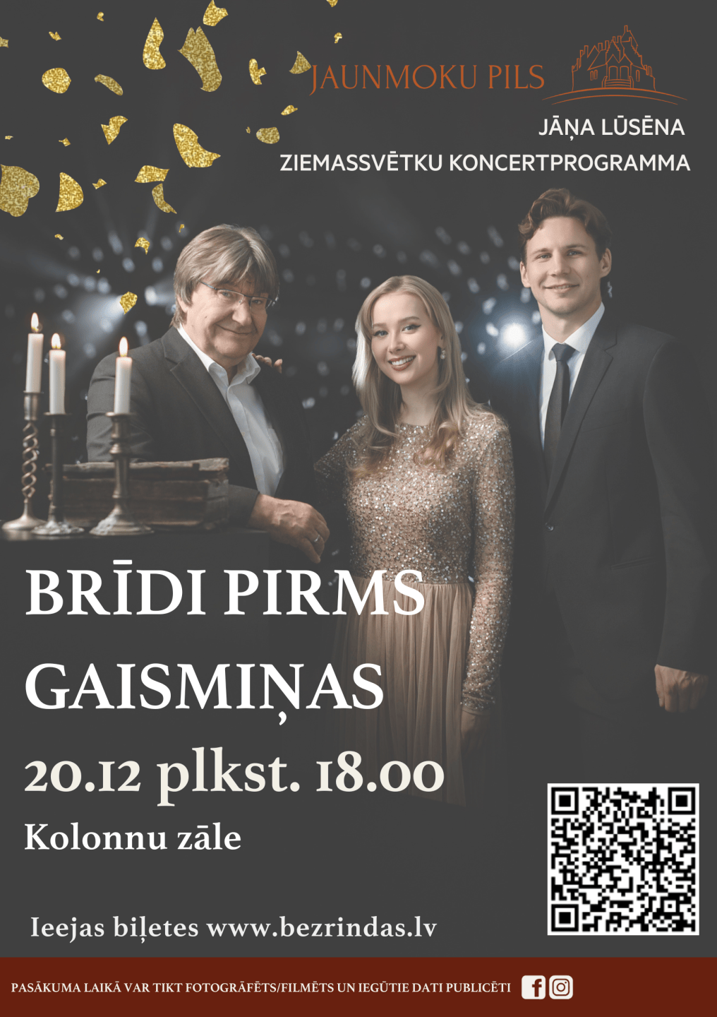 Informējam, ka pasākuma laikā notiks fotografēšana un filmēšana. Attēli un video var tikt izmantoti Jaunmoku pils publicitātes un pasākumu atspoguļošanas nolūkos