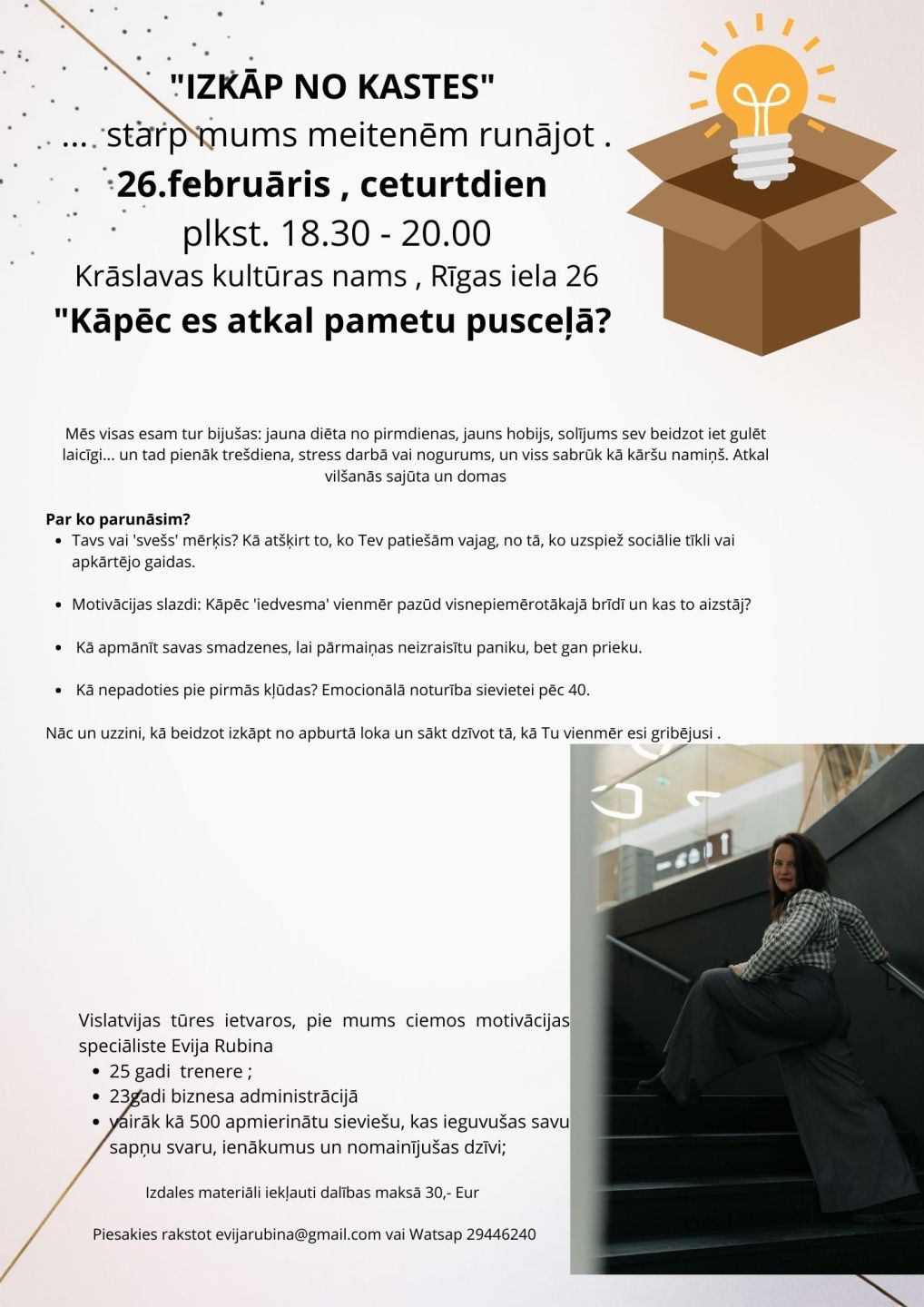 Event "Izkāp no kastes " organizer: Evija Rubina