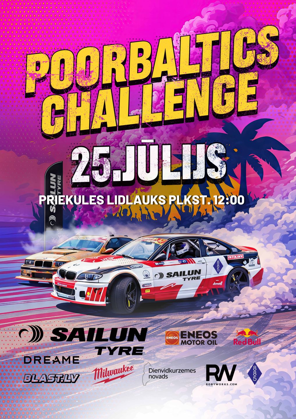 At the heart of the event will be Poorbaltics Challenge, where participants will compete on the track by overcoming various gymkhana elements. Precision, speed and skill will determine the best drivers, and at the end of the day we will put on a proper burnout show!
