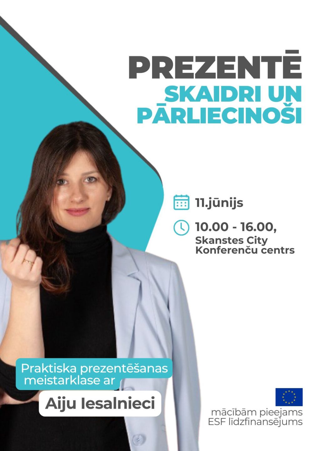 Praktiska meistarklase "Prezentē skaidri un pārliecinoši" ar Aiju Iesalnieci