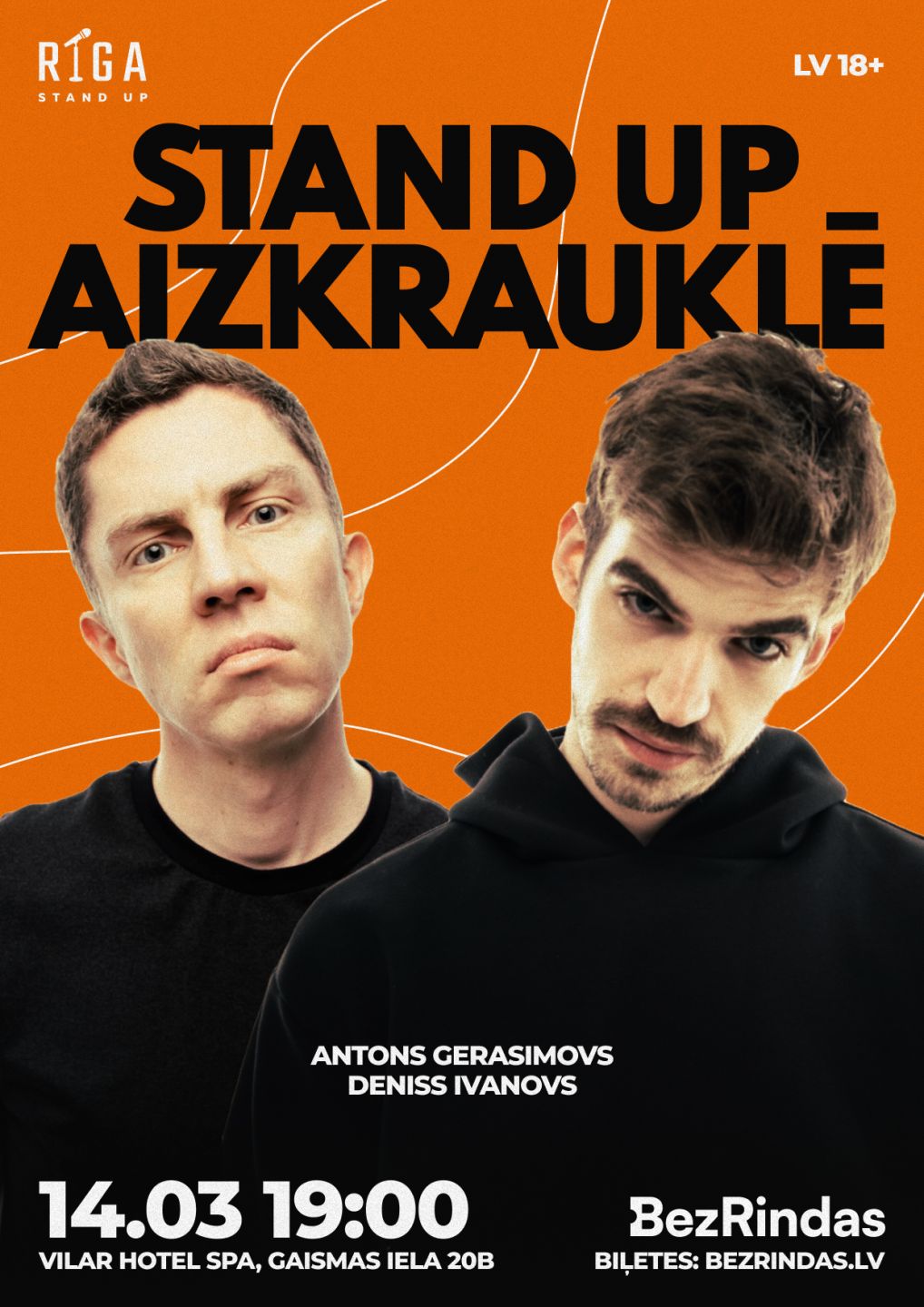 Uzstāsies spilgtākie komiķi no Rīgas Stand Up kluba: Deniss Ivanovs un Antons Gerasimovs.