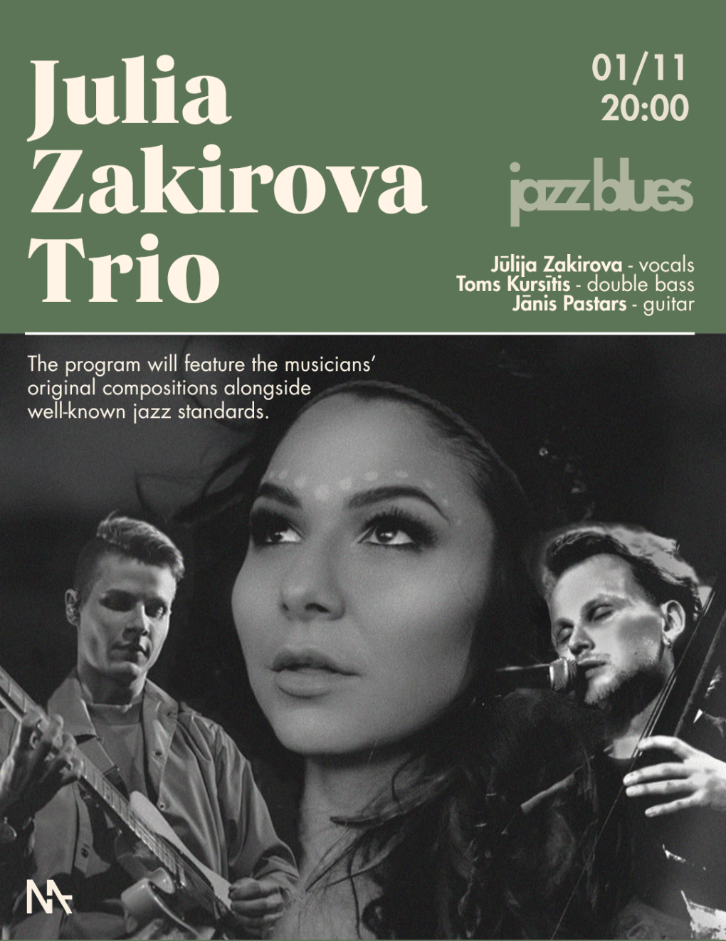1. novembrī MASA kultūrbārā skanēs džeza vakars ar Jūlijas Zakirovas trio. Programmā: mūziķu oriģinālkompozīcijas un pasaulē pazīstamas džeza melodijas.