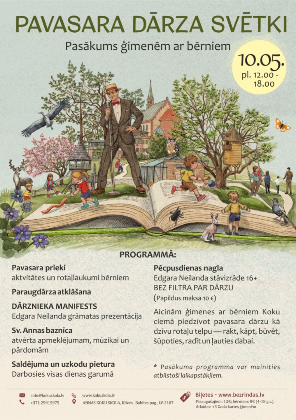 Savukārt pieaugušos priecēs paraugdārza atklāšana un Edgara Neilanda grāmatas “Dārznieka manifests” prezentācija. Būs iespēja doties gida vadītās ekskursijās, kur dabā atklāt Koku ciema stāstus, kā arī apmeklēt Sv. Annas baznīcu mūzikai un pārdomām.