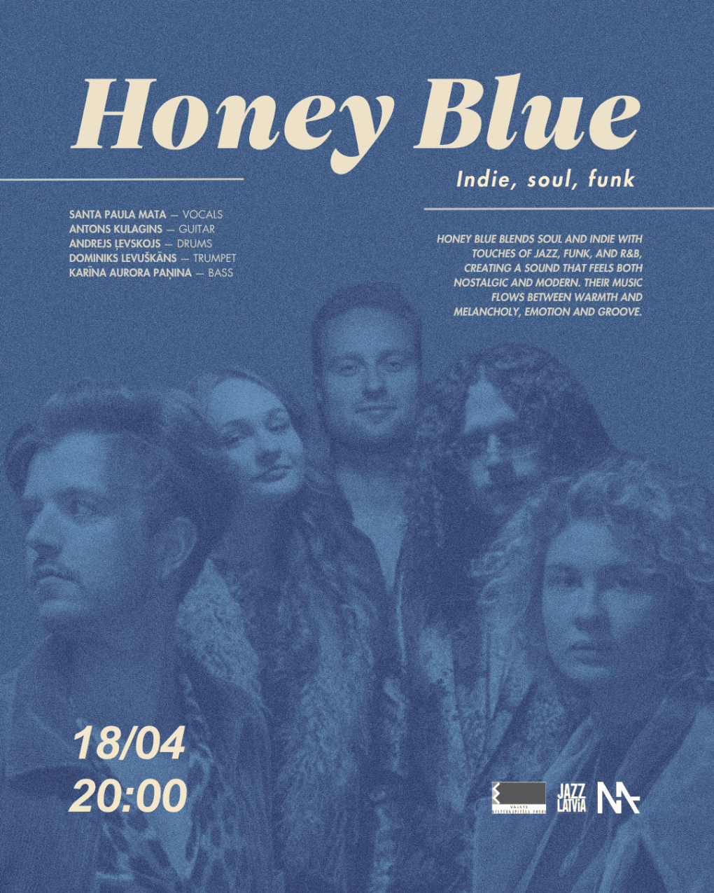 18 апреля в джаз-клубе MASA выступит инди-группа Honey Blue — проект, вдохновлённый соулом и фанк с ярко выраженной ретро-атмосферой.