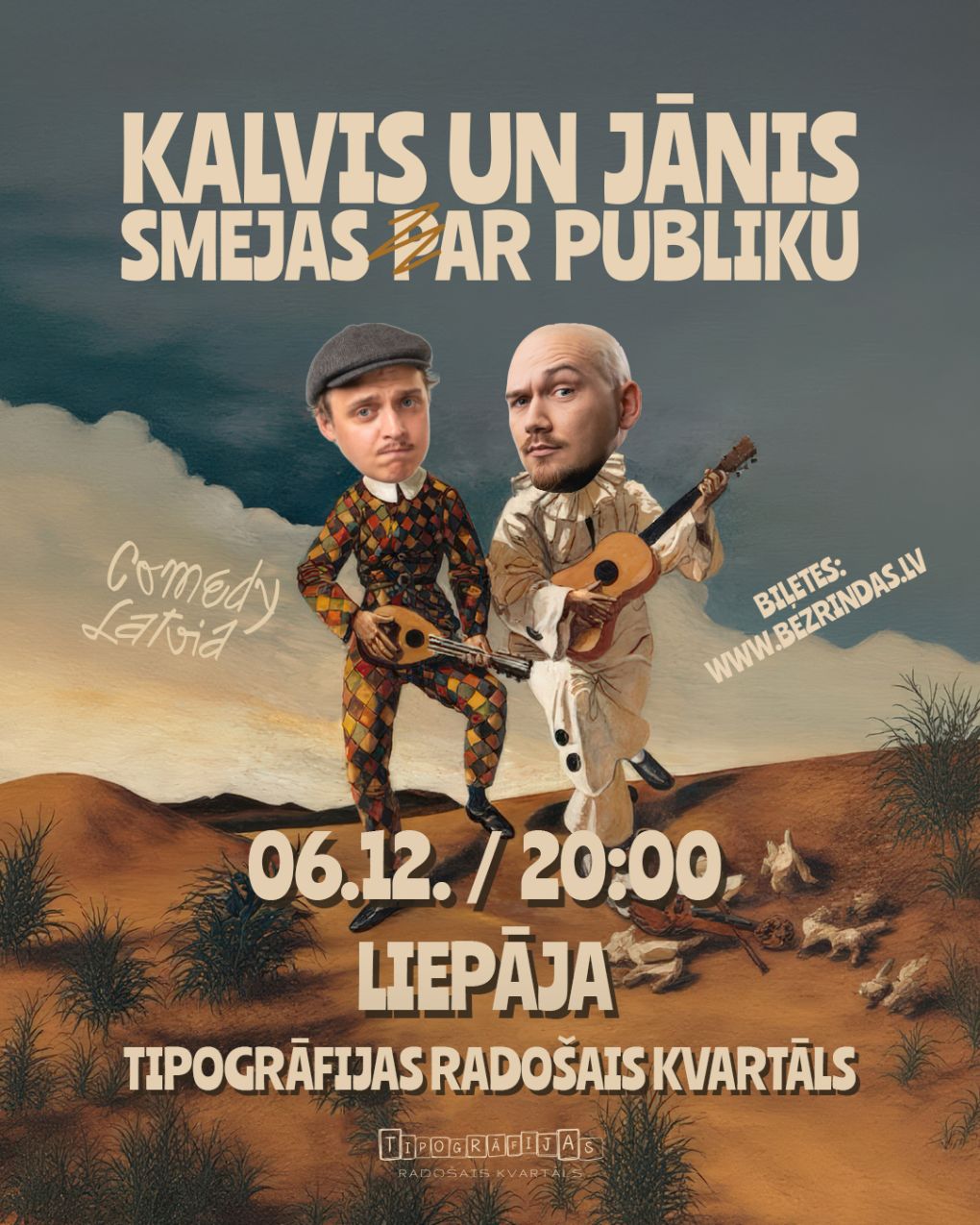 Comedy Latvia komiķi Kalvis Troska un Jānis Kreičmanis dodas uz Liepāju, lai sniegtu jums humora pilnu vakaru "crowdwork" formātā.